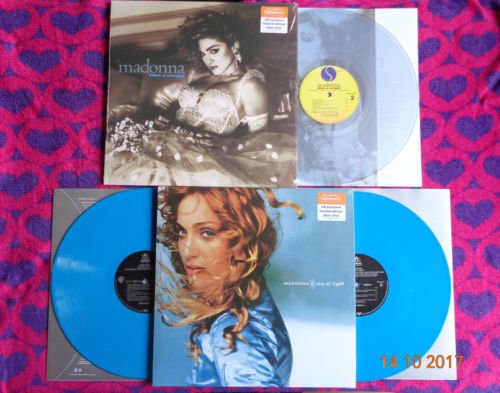 The blue vinyl edition of 1998 s brilliant ray of light is available it s a double but not in a gatefold sleeve alongside a clear vinyl pressing of madonna s second album the iconic like a. Like a prayer red vinyl.